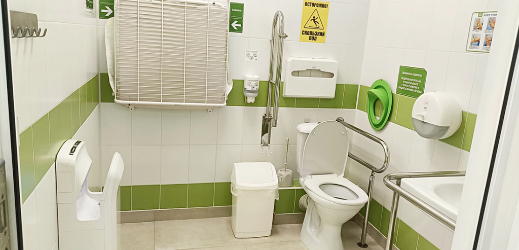 4. В центре есть несколько оборудованных туалетов с поручнями и кнопкой для вызова помощника.