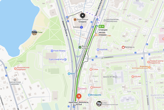 Маршрут от ближайших остановок общественного транспорта со стороны центра Санкт-Петербурга