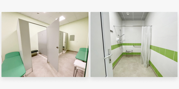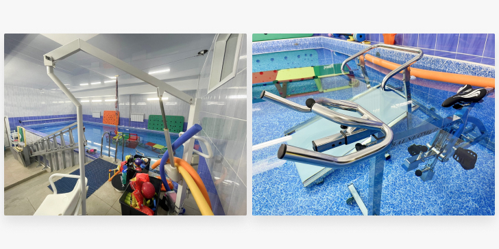 10. В бассейне оборудованы душевые и раздевалки для маломобильных пациентов, также есть специальный подъемник в бассейне.